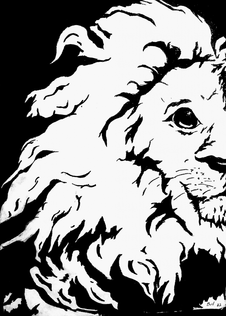 - Then weary of my frustration and desiring peace in 1982′, I drew this lion, thinking of him as more of a peaceful power rather than an angry avenger.